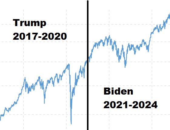 The thing is, Biden’s administration did extremely well with the economy. Check out this graph of the Dow Jones Industrial Average – Trump did well, but Biden’s has been the highest ever.